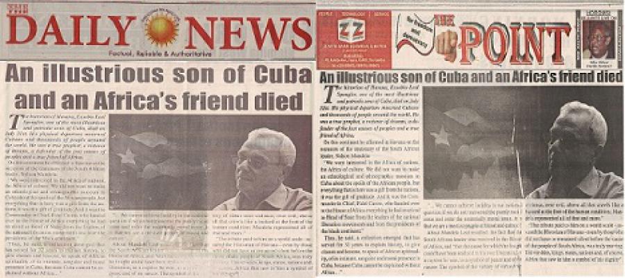 Ambos cotidianos de esta nación del occidente africano publican en sus ediciones impresas sendas notas en las que señalan que la partida física de Leal enlutó al pueblo de la mayor de Antillas.