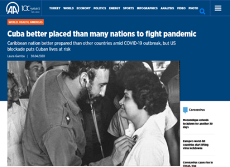 Ankara, 30 de abril de 2020. La Agencia de Prensa “Anadolu”, la principal de Turquía, publicó hoy, bajo titulares, un amplio artículo, que destacó variadas razones por las cuales Cuba está en mejor condición que muchos países para luchar contra la COVID-19.