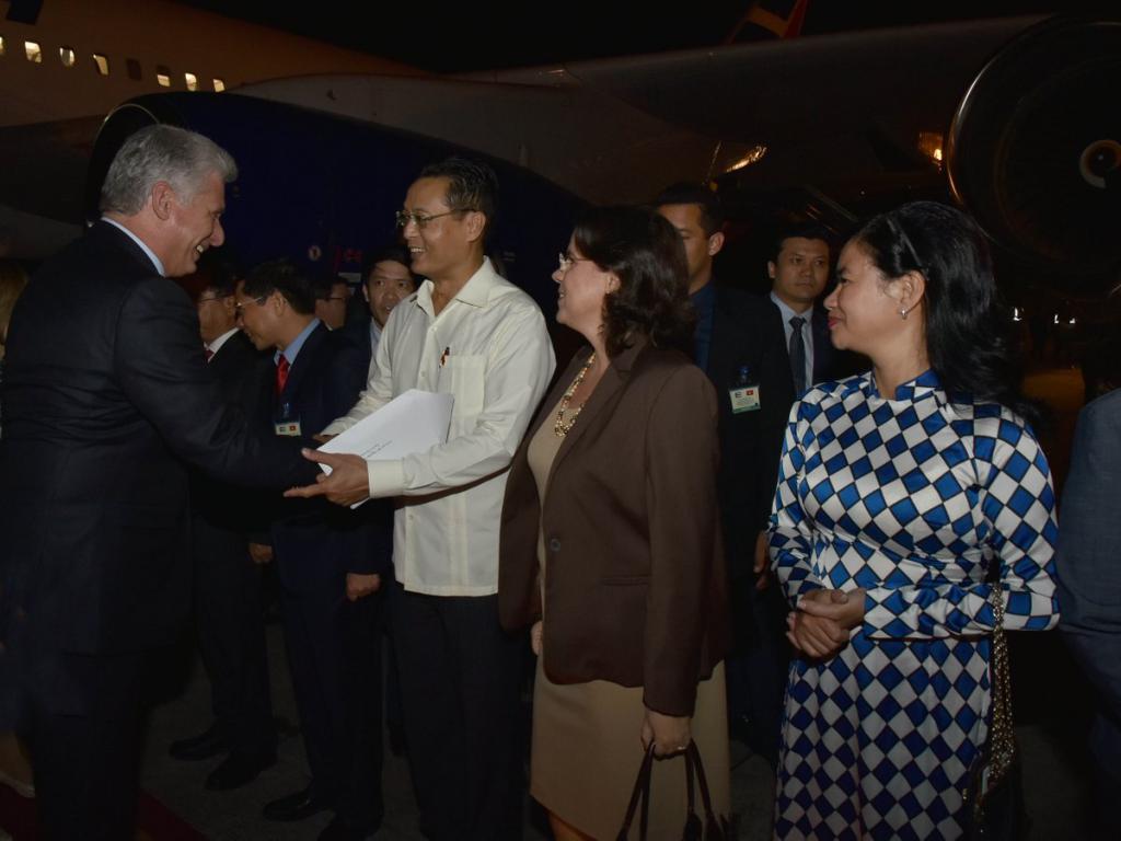 Aeroportul Internațional Noi Bai a fost salutat de vicepreședintele Vietnam, Dang Thi Ngoc Thinh, și de ambasadorul cubanez Lianys Torres, care se va alătura delegației sale. Delegația include, de asemenea, vicepreședintele Consiliului de Miniștri, Ricardo Cabrisas; ministrul afacerilor externe, Bruno Rodríguez, ministrul comunicațiilor, Jorge Luis Perdomo, precum și ministrul energiei și al minelor, Raúl García.
