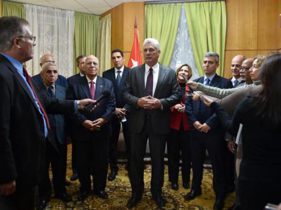 La scurt timp după sosirea în Federația Rusă, primul sejur al turneului său internațional, Președintele Diaz-Canel și delegația sa de însoțire, împreună cu reprezentanții diplomatici aici, sa dus la reședința Misiunii cubaneze de a împărtăși emoțiile și a trimite, din acest teren prietenos, un mesaj de încredere și optimism față de poporul nostru.
