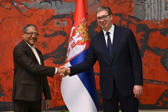 Belgrado, 15 de diciembre de 2025: El presidente de la República de Serbia, Aleksandar Vučić, recibió este lunes las Cartas Credenciales que acreditan al nuevo Embajador Extraordinario y Plenipotenciario de Cuba ante el país balcánico, Pavel Orencio Díaz Hernández. Durante la ceremonia oficial, celebrada en el Palacio de Serbia con los honores militares correspondientes, el nuevo embajador hizo entrega del documento oficial, firmado por el presidente de Cuba, Miguel Díaz-Canel Bermúdez, que lo acredita como tal, marcando así el inicio oficial de su misión.