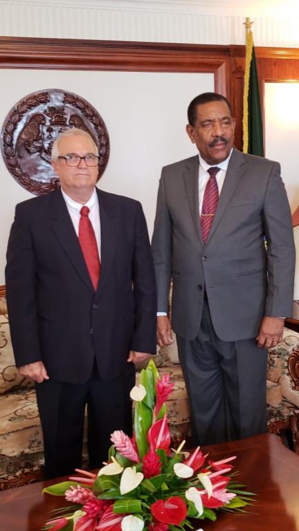 Roseau. 28 de diciembre de 2018. En una solemne ceremonia efectuada en el Palacio de la Presidencia de la Mancomunidad de Dominica, el 28 de diciembre de 2018, el nuevo Embajador de Cuba en esta hermana nación, Ulises Ignacio Arranz Fernández, presentó ante el Presidente del país, el Excelentísimo Sr. Charles Angelo Savarin, las Cartas Credenciales que lo acreditan como Embajador Extraordinario y Plenipotenciario