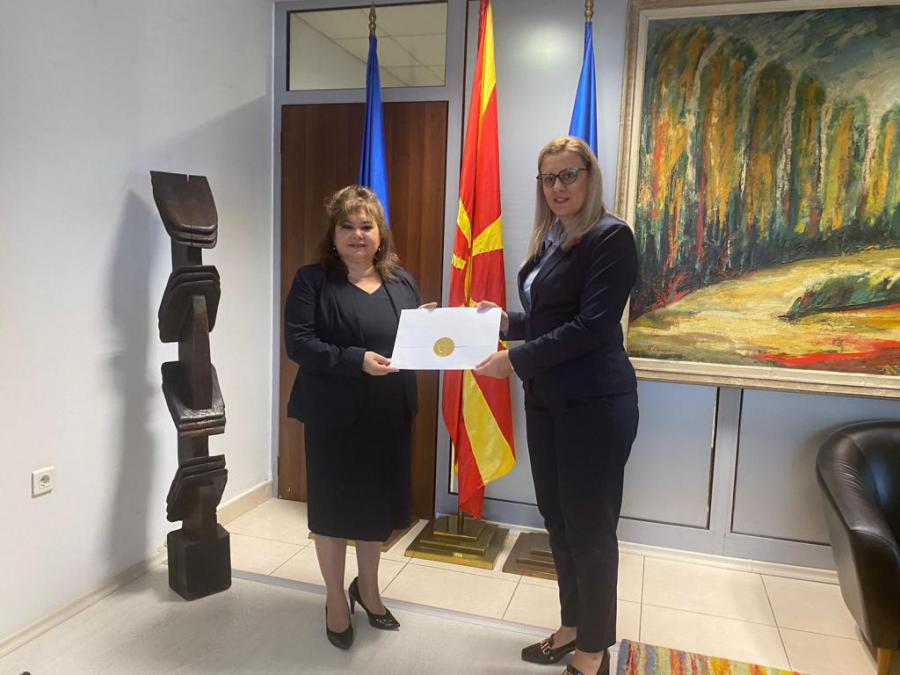 Skopje, 27 de septiembre de 2023. La nueva Embajadora designada de Cuba, Marieta García Jordán hizo entrega a la Excma. Sra. Fatmire Isaki, Viceministra de Relaciones Exteriores de la República de Macedonia del Norte, de las Copias de Estilo de las Cartas Credenciales que la acreditan como Embajadora Extraordinaria y Plenipotenciaria de la República de Cuba, ante ese país. Durante el encuentro las diplomáticas intercambiaron de manera cordial y amistosa sobre las históricas relaciones desarrolladas entre ambos países y el potencial existente para continuar fortaleciéndoles y ampliándolas en el ámbito político-diplomático y en diversos sectores, de mutuo interés, como salud pública, turismo, cultura, deportes, educación, energía y otros.