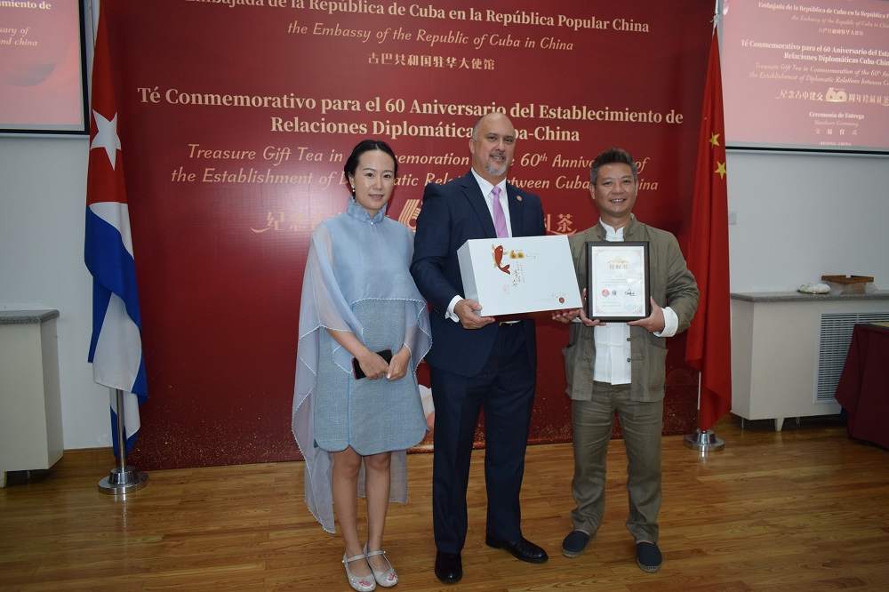 El embajador cubano Carlos Miguel Pereira Hernández, al hacer uso de la palabra, destacó la relevancia de la celebración de estos 60 años de vínculos diplomáticos ininterrumpidos entre ambos países, y reconoció que “Aún en medio de estas complejas circunstancias, debo reconocer que nuestros amigos chinos siempre encuentran alternativas para mostrar su gran cariño por Cuba”. De igual modo agradeció, en nombre del Gobierno y pueblo cubanos, a los campesinos chinos que cultivan el té y que proporcionan este producto de máxima calidad, dedicado especialmente a la amistad entre ambos países. “La elección del té Pu’er, también conocido como té de los emperadores por su exquisita maduración, rinde homenaje a estos 60 años de relaciones diplomáticas ininterrumpidas, llenas de recuerdos imborrables”.