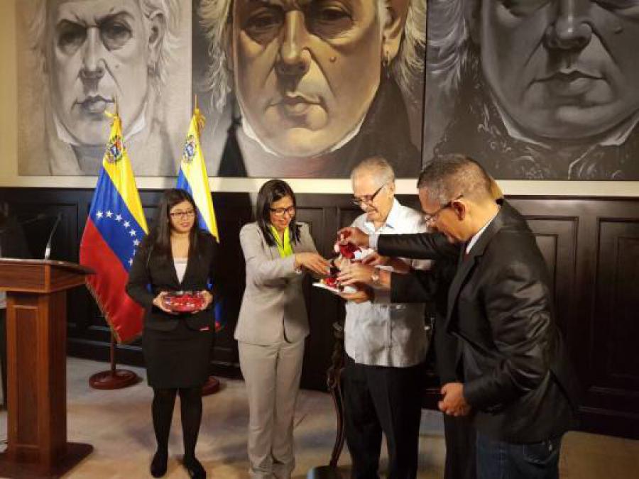 VENEZUELA, 4 de octubre de 2017.- En ceremonia efectuada en el salón Generalísimo Francisco de Miranda del Palacio Federal Legislativo, sede de la Asamblea Nacional Constituyente (ANC), fue presentado el libro “Proceso Constituyente, ingenio revolucionario de Chávez”, escrito por el ex embajador de Cuba en Venezuela (1994-2009), Germán Sánchez Otero. El diplomático cubano resaltó que el pueblo venezolano que salió a votar, venciendo todas las vicisitudes, eligió la ANC que es mucho más fuerte, consciente y firme que la Constituyente de 1999. “Para fortalecer y proteger la Constitución Bolivariana y que el proceso no se desvíe de su ruta emancipadora, es imprescindible continuar el legado de Chávez”, expresó Sánchez Otero.