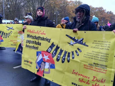 En la marcha estuvo presente también la solidaridad con Cuba. La organización de solidaridad de CubaSi encabezó las demandas del movimiento de solidaridad por el fin del bloqueo de Estados Unidos contra Cuba. Se mostraron Pancartas de Abajo el Bloqueo y contra la inclusión de Cuba en la Lista de Países Patrocinadores del Terrorismo.