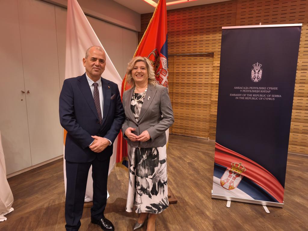 Nicosia, Chipre, 19 de febrero de 2026.− Invitado por la Embajadora de la República de Serbia en Chipre, Excelentísima Sra. Suzana Boskovic-Prodanovic, el Embajador de Cuba en esta capital, Rubén Pino Martínez, participó este miércoles en la recepción oficial ofrecida por esa nación de la península balcánica, a propósito de haberse conmemorado el pasado 15 de febrero su Día Nacional.