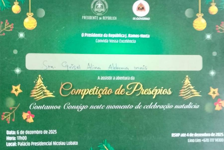 Dili, 7 de diciembre de 2025. En los jardines del Palacio de la Presidencia, el jefe de Estado de Timor Leste, Dr José Ramos Horta, inauguró la competencia anual que realizan los artistas y pequeños innovadores con materiales reciclados sobre el inicio de la Navidad.