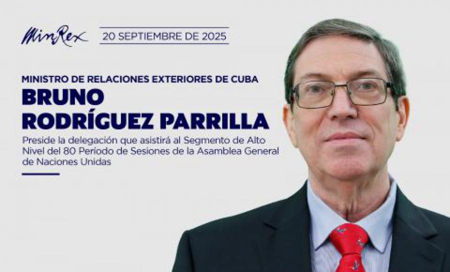 Nueva York, 20 de septiembre de 2025.- El ministro de Relaciones Exteriores de Cuba, Bruno Rodríguez Parrilla, encabeza la delegación que asistirá al Segmento de Alto Nivel del 80 Período de Sesiones de la Asamblea General de Naciones Unidas.