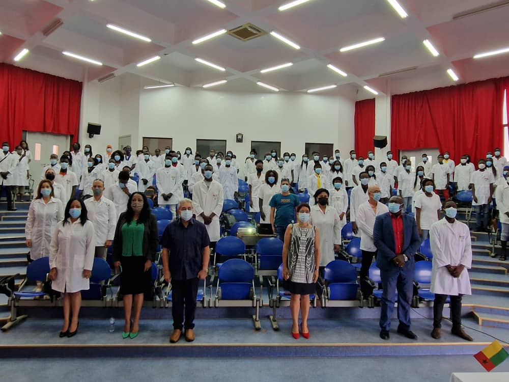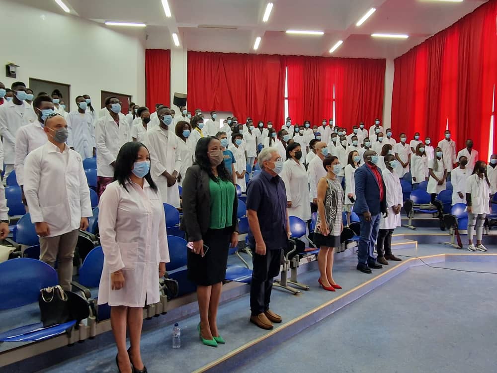 En la mañana del 12 de Septiembre, tuvo lugar el Acto de inicio del curso académico 2022-2023 de la carrera de medicina en la Facultad “Raúl Díaz Argüelles García”, en Guinea Bissau. El emotivo acto estuvo presidido por el Embajador de la República de Cuba, la Jefa de la Brigada Médica Cubana; el Decano Nacional y la Decana Cubana de la Facultad así como una representación del claustro de profesores y los estudiantes. Con todo el simbolismo que implica este tipo de actividad, estudiantes de 1er año hicieron el juramento como futuros profesionales.