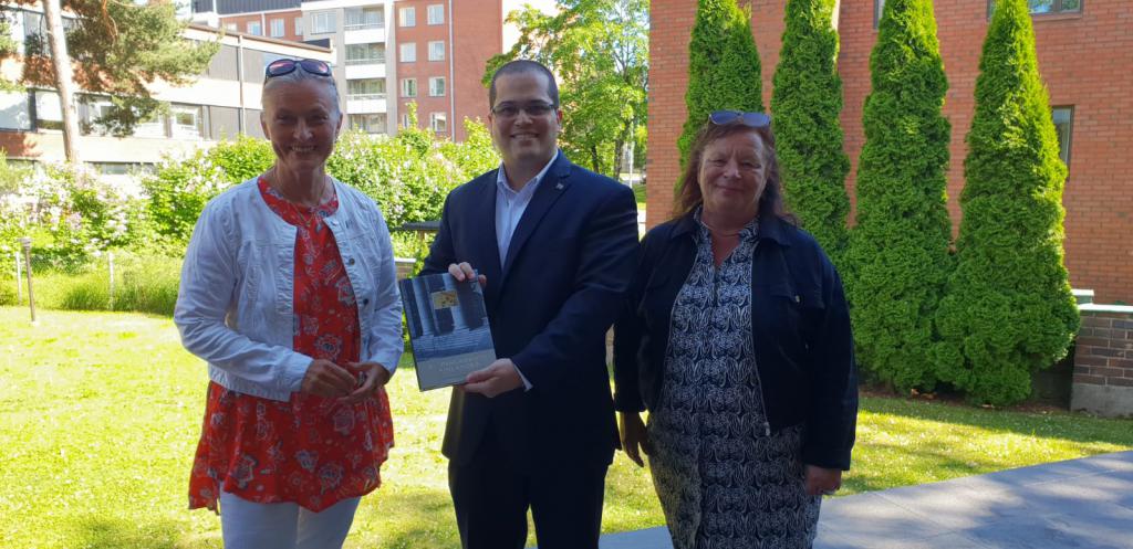 Järvinen obsequió, al jefe de misión interino, un ejemplar del libro: "La Democracia ayer, hoy y mañana: El Parlamento Finlandés", el cual recrea la evolución del órgano legislativo, a través de las distintas etapas históricas, por las cuáles ha atravesado el país Nórdico desde su independencia en 1917 y hasta la actualidad.