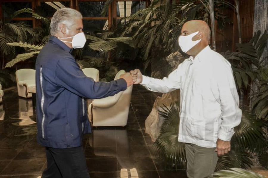 La Habana, 25 de agosto de 2021.- El Primer Secretario del Comité Central del Partido Comunista de Cuba y Presidente de la República, Miguel Díaz-Canel Bermúdez, sostuvo este miércoles un encuentro con Carlos Lazo, líder del proyecto Puentes de Amor, grupo que fomenta la solidaridad con la nación antillana desde Estados Unidos.