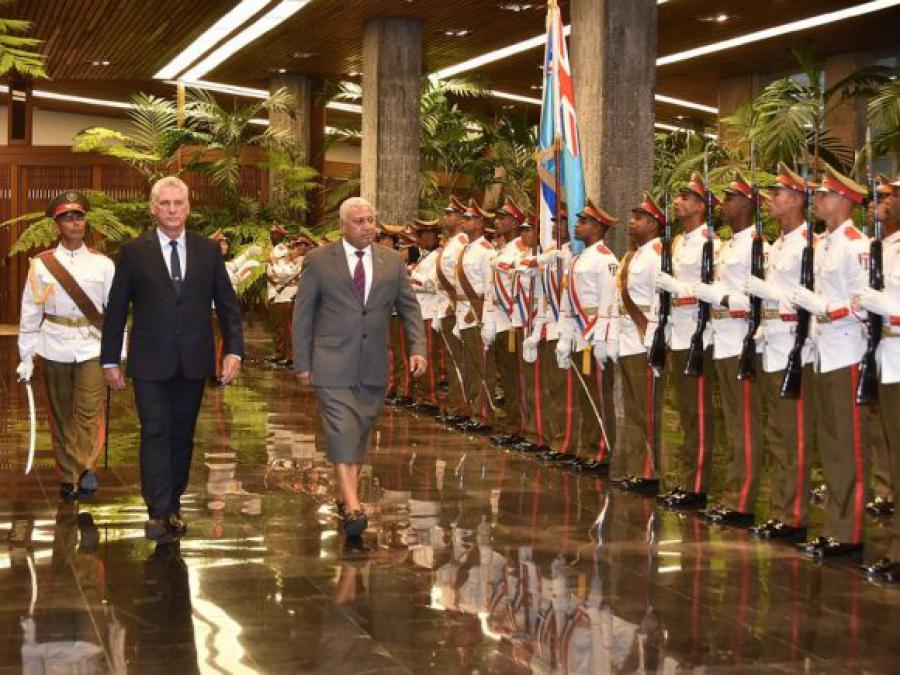 El Presidente de los Consejos de Estado y de Ministros, Miguel Díaz-Canel Bermúdez, recibió este miércoles a Josaia Voreque Bainimarama, Primer Ministro de la República de Fiji, quien realiza una visita oficial a nuestro país.
