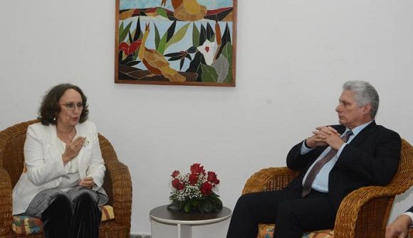 El presidente de la República de Cuba, Miguel Díaz-Canel Bermúdez, recibió este lunes a la Secretaria General Iberoamericana, señora Rebeca Grynspan, quien participa en la Primera Reunión de Ministras, Ministros y Altas Autoridades de Educación Superior de Iberoamérica, que sesiona en La Habana hasta el 11 de febrero, en el marco de las actividades sectoriales previas a la XXVII Cumbre Iberoamericana, a celebrarse el 26 de noviembre de 2020, en Soldeu, Andorra.