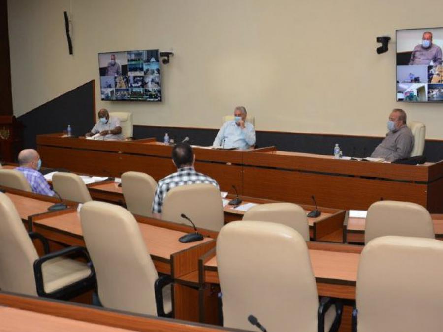 Como colofón de la intensa jornada de trabajo desarrollada este jueves por el Gobierno cubano, el Presidente de la República, Miguel Díaz-Canel Bermúdez, y el Primer Ministro, Manuel Marrero Cruz, encabezaron desde el Palacio de la Revolución el encuentro que de manera habitual se realiza cada tarde, con el propósito de analizar el escenario que vive el país con relación con la COVID-19.