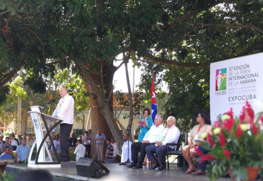 En las palabras de apertura, el ministro de Comercio Exterior e Inversión Extranjera, Rodrigo Malmierca, destacó que el evento se realiza en circunstancias muy complejas por el recrudecimiento del bloqueo económico, comercial y financiero de Estados Unidos contra la isla.