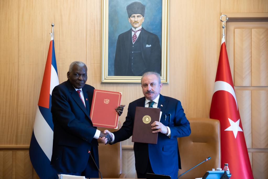 Esteban Lazo Hernández, Presidente de la Asamblea Nacional del Poder Popular y del Consejo de Estado de la República de Cuba, fue recibido por el Excmo. Prof. Dr. Mustafa Şentop, Presidente de la Gran Asamblea Turca, con quien pasó revista a la marcha de las relaciones bilaterales y sus potencialidades de desarrollo.