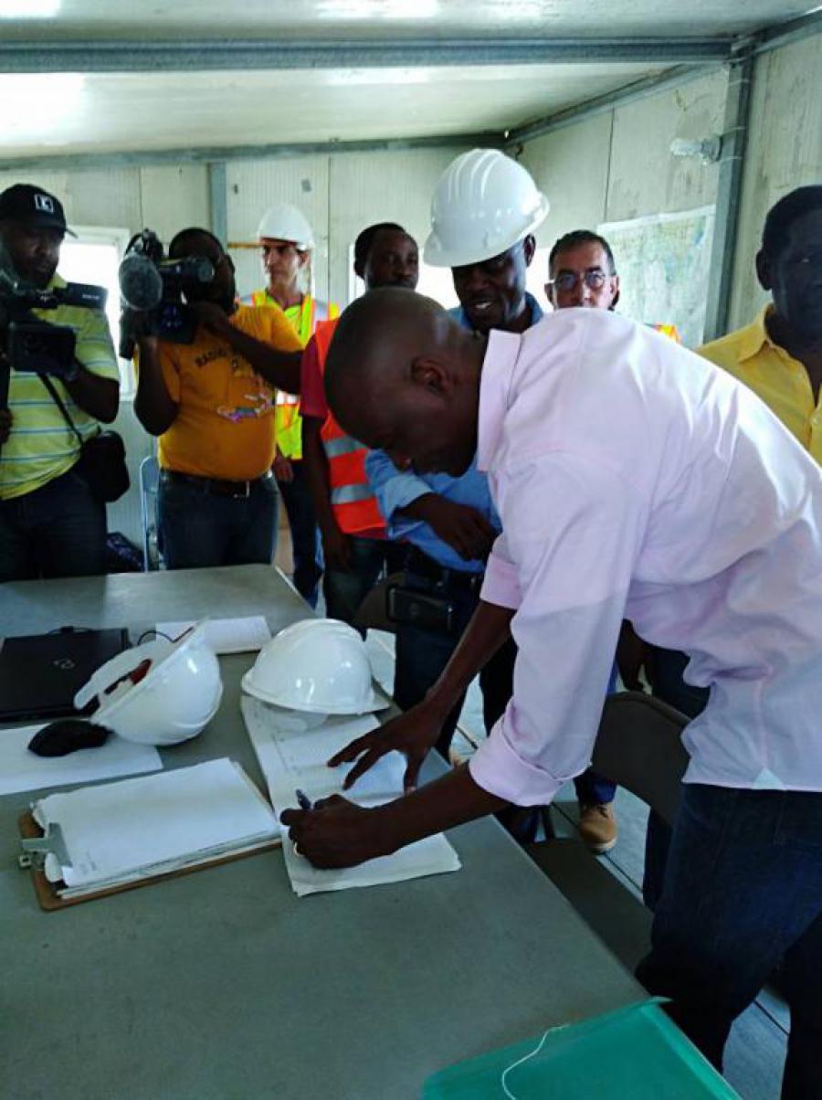Puerto Príncipe, 12 de marzo de 2018- El presidente de la República de Haití, Jovenel Moise, visitó el proyecto ya en ejecución relativo a la construcción de la presa sobre el Río Marion, en el Departamento Nordeste, el cual se desarrolla con la colaboración de técnicos cubanos del Instituto Nacional de Recursos Hidráulicos y de la Empresa cubana DINVAI.
