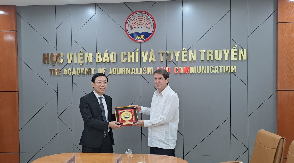Legañoa y sus acompañantes también visitaron este martes la Academia de Periodismo y Comunicación, donde dialogaron con el vicerrector Nguyen Doc Toan, quien propuso impulsar la cooperación enfocándose en cinco puntos fundamentales.