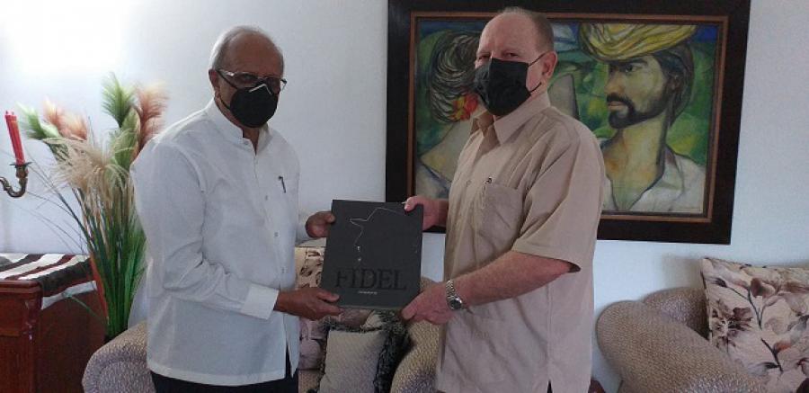El miembro del Parlamento de Sri Lanka Profesor Tissa Vitarana, Presidente del grupo parlamentario de Amistad Sri lanka Cuba, visitó la sede de la embajada de Cuba donde fue recibido por Andrés Marcelo González Garrido, Embajador de Cuba.