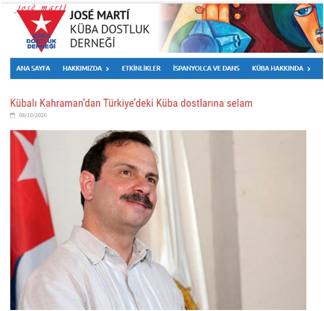 Ankara, 9 de octubre de 2020. La Asociación de Amistad Cuba-Turquía “José Martí” publicó en su página web una carta de felicitación del Presidente del Instituto Cubano de Amistad con los Pueblos (ICAP), Fernando González Llort, dirigida al presidente de la Asociación Yigit Günay y demás amigos de esta entidad solidaria, en ocasión de la apertura de su nueva filial en la importante provincia-ciudad turca de Antalya.