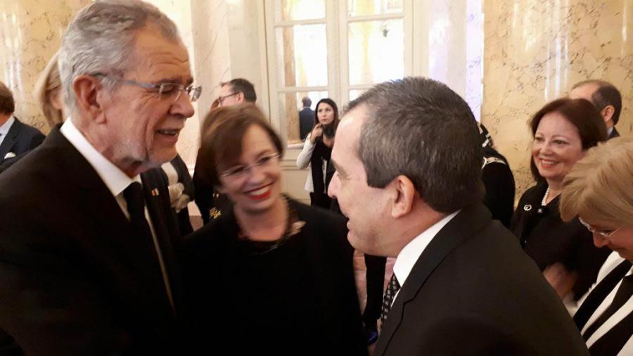 En ocasión de la Recepcion por año nuevo que ofrece el Presidente Federal de Austria, Dr. Alexander Van der Bellen, al Cuerpo Diplomático acreditado en este país; el Embajador cubano, Excmo. Sr. Juan Antonio Fernández Palacios conversó ampliamente con el mandatario e intercambió saludos con la nueva Ministra Federal para Europa, Integración y Asuntos Exteriores, Excma. Sra. Karin Kneissl y con otras autoridades de Austria.