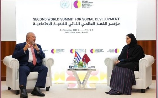 (Doha, 9 de noviembre de 2025) – El compañero Manuel Marrero Cruz, miembro de l buró político del Comité Central del Partido y primer ministro de la República de Cuba, realizó una visita de trabajo al Estado de Qatar en ocasión de su participación en la Segunda Cumbre Mundial sobre Desarrollo Social, que se celebró del 4 al 6 de noviembre en esta capital. A su llegada al Aeropuerto Internacional Hamad fue recibido por el Excmo. Sr. Ibrahim Yousif Abdullah Fakhro, director de Protocolo de la Cancillería qatarí.