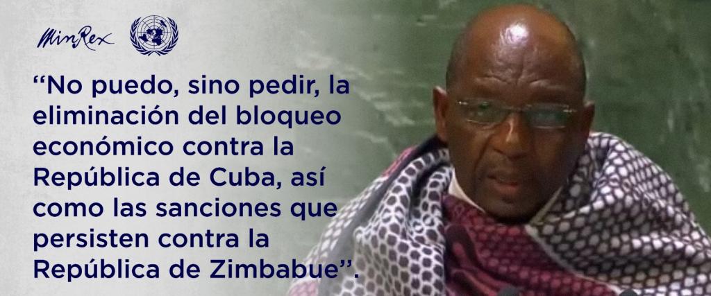 "No puedo, sino pedir, la eliminación del bloqueo económico contra la República de Cuba, así como las sanciones que persisten contra la República de Zimbabue."