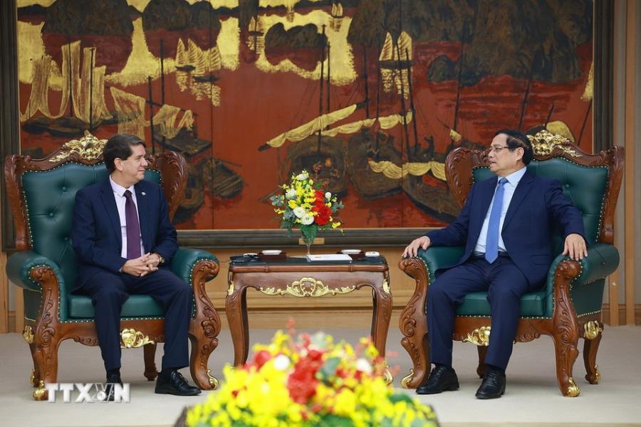 El primer ministro de Vietnam, Pham Minh Chinh, recibió hoy al presidente de la Agencia Informativa Latinoamericana Prensa Latina, Jorge Legañoa, quien viajó aquí para un encuentro de trabajo con la agencia vietnamita de noticias VNA.