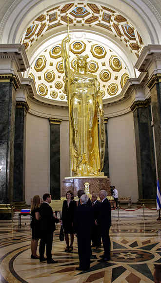 El titular del Gobierno de la Federación de Rusia dijo también que la recuperación del chapado en oro de la cúpula, la restauración y el dorado de la Estatua de la República, constituyen “una muestra más de la amistad verdadera entre nuestros pueblos”.