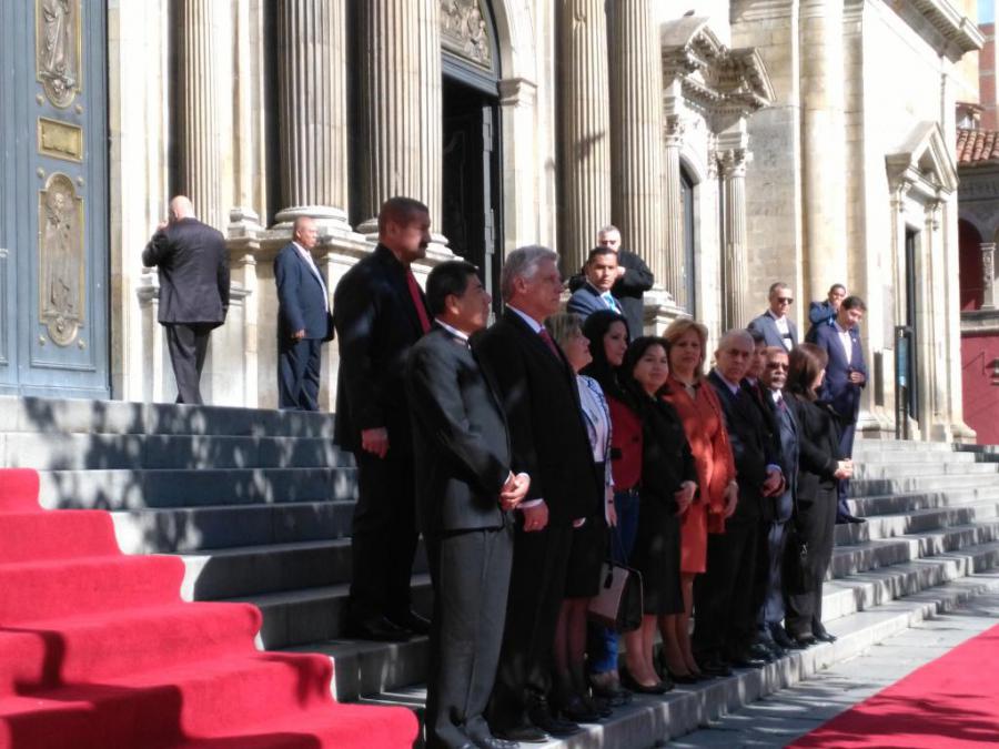 Por la parte boliviana, se encontraban presentes el canciller Fernando Huanacuni, la ministra de Culturas y Turismo, Wilma Alanoca; la vicecanciller Guadalupe Palomeque y Juan Ramón Quintana, embajador designado para Cuba. (EmbaCuba Bolivia)