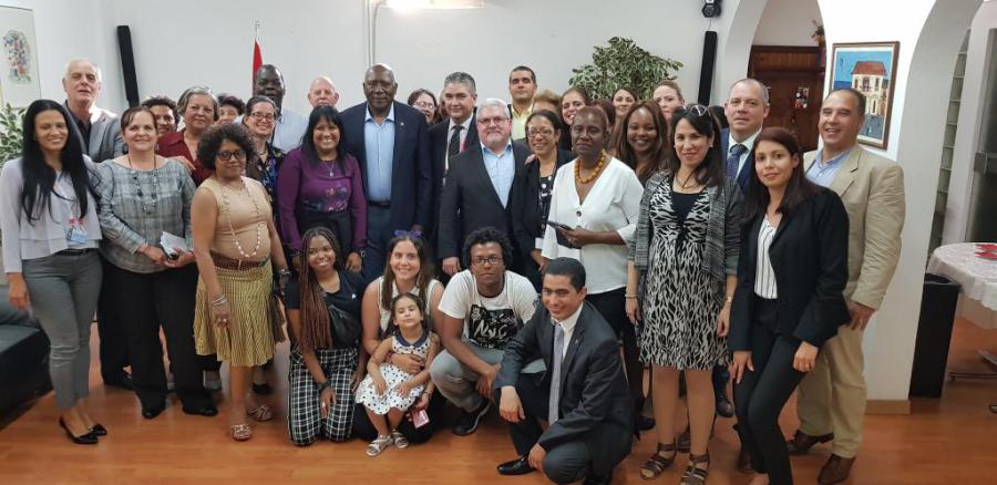 En un ameno intercambio, Valdés Mesa, quien llegó la víspera a esta urbe para asistir a la sección de alto nivel de la 108 reunión de la Conferencia Internacional del Trabajo, actualizó a sus compatriotas de la situación en la isla y los planes impulsados por el Gobierno para garantizar el bienestar de sus ciudadanos.