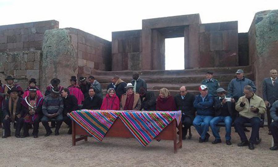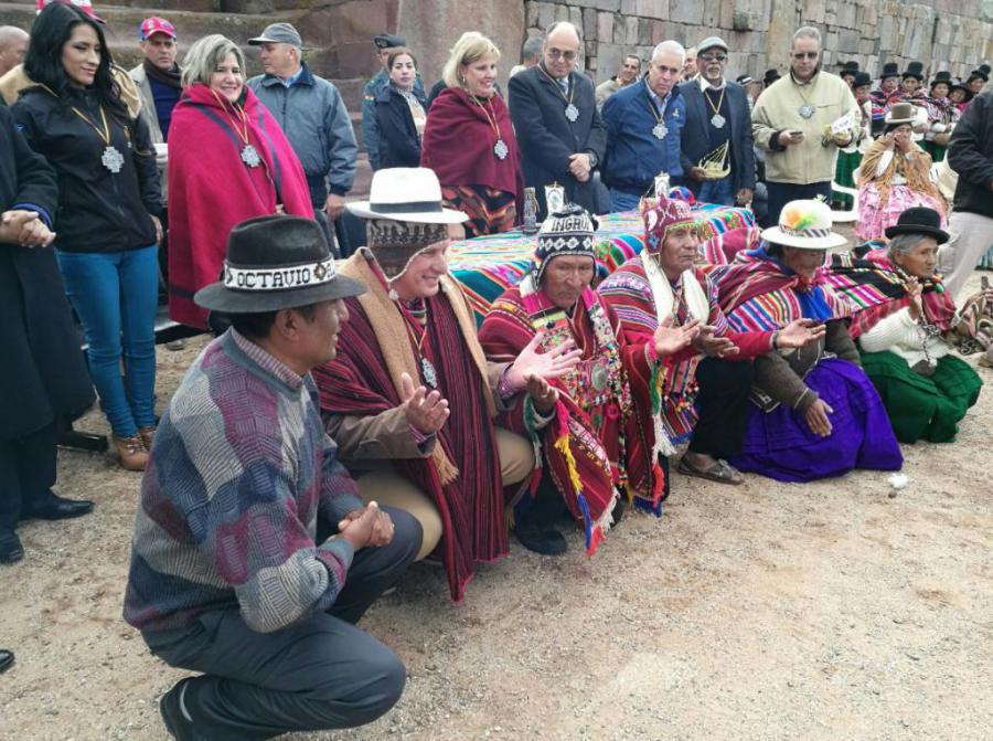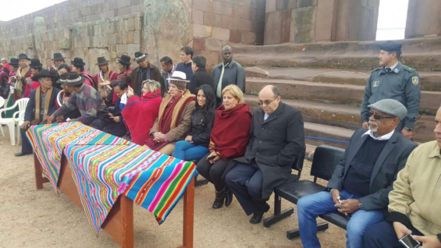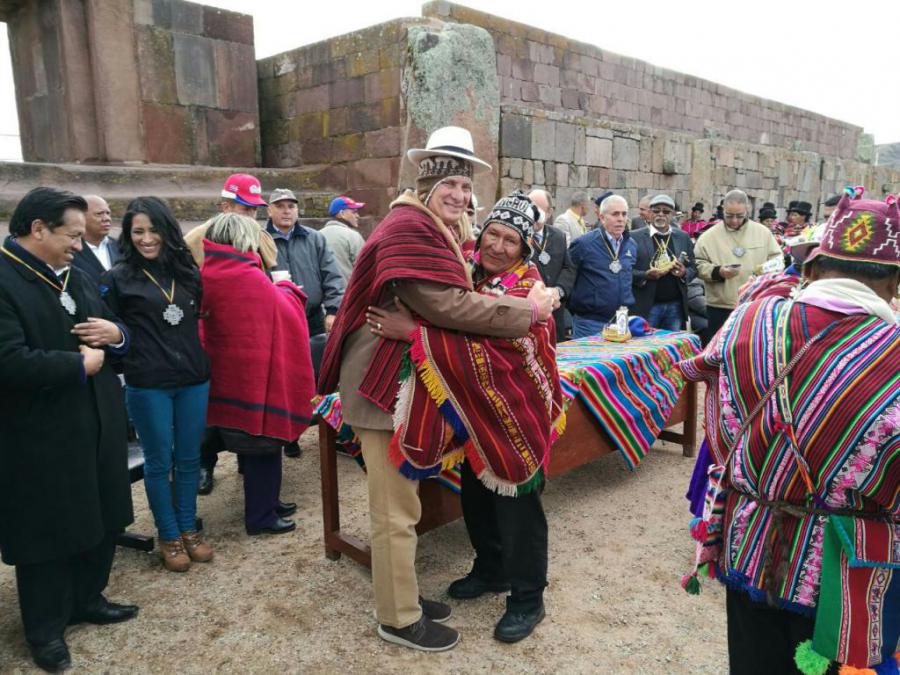 Durante la celebración de una Ceremonia Ritual ante el templo de Kalasasaya, el Gobierno Municipal de Tiwanaku otorgó al dirigente cubano el grado de Huésped Ilustre de la localidad.