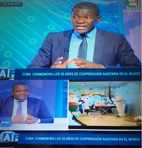 Malabo, 26 de mayo del 2021. El programa matutino “A Fondo” de la Televisión de Guinea Ecuatorial (TVGE), en su emisión del 26 de mayo, resaltó la labor de los profesionales de la salud en el 58 Aniversario de la cooperación médica cubana. Durante el análisis, los panelistas hicieron un reconocimiento a la labor que desarrollan los médicos cubanos en varios países del mundo, en particular Guinea Ecuatorial.