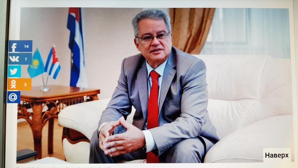 Nur- Sultán, 26 de octubre de 2019. La Agencia de Noticias de Kazajstán “Informburo” publicó una extensa entrevista al embajador de Cuba, Emilio Pevida Pupo, donde el diplomático denuncia el criminal bloqueo económico, comercial y financiero de EE.UU. a Cuba que ya se extiende por casi 60 años, prácticamente desde el mismo triunfo de la Revolución cubana.