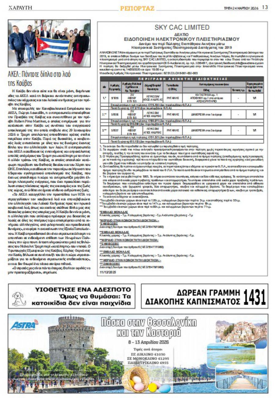 Con el jefe del grupo parlamentario de AKEL, Giorgos Loukaides, la delegación visitó la Embajada de Cuba y se reunió con el embajador Rubén Pino Martínez, quien los informó sobre la situación energética de Cuba, agravada a partir del 29 de enero de 2026 con la amenaza de Trump de imponer sanciones a cualquier estado que envíe petróleo a Cuba.