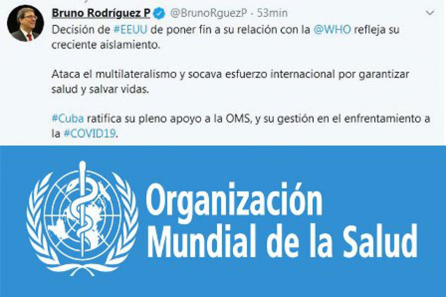 Al respecto, el titular de Relaciones Exteriores afirmó en Twitter que la decisión de Estados Unidos de finalizar su relación con la OMS refleja el creciente aislamiento del país norteño. Igualmente, ataca el multilateralismo y socava esfuerzo internacional por garantizar salud y salvar vidas, escribió el jefe de la diplomacia cubana en la red social. El presidente Donald Trump anunció la víspera que su gobierno redirigirá los fondos prometidos al organismo y a otras entidades responsables de la salud mundial.