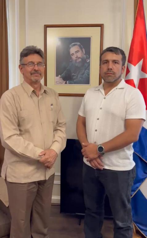 Santiago de Chile, 13 de febrero de 2026.- El Embajador de Cuba en Chile, Oscar Cornelio Oliva, recibió en la tarde de este viernes a Ariel Ramírez González, Presidente de la Agrupación de Profesionales Chilenos Graduados de la Escuela Latinoamericana de Medicina (ELAM) de Cuba.