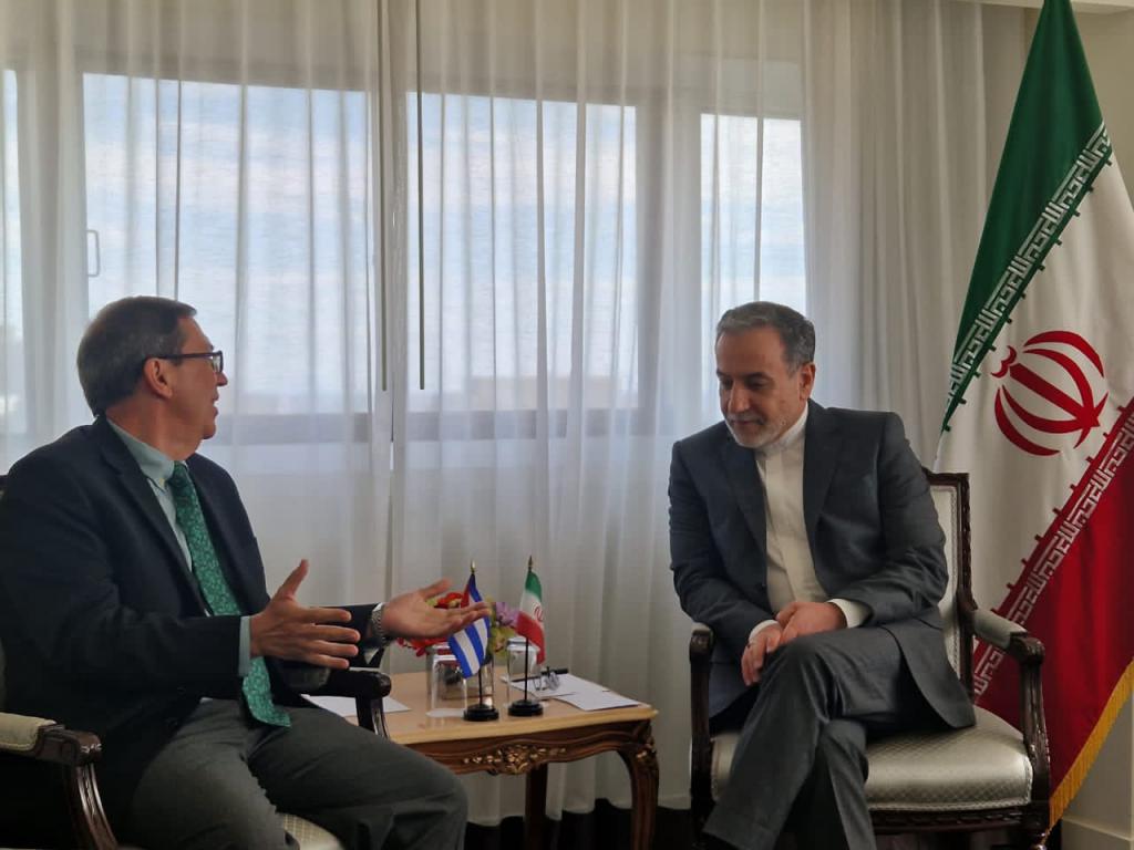 Teherán, 21 de septiembre de 2024: El ministro de Relaciones Exteriores de Cuba, Bruno Rodríguez Parrilla, se reunió con su homólogo de la República Islámica de Irán, Seyed Abbas Araghchi, en marco de la 79 Asamblea General de las Naciones Unidas en Nueva York.