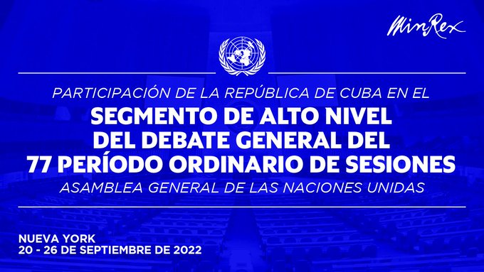 Cuba ratificará la próxima semana su compromiso con la paz y el multilateralismo durante el Segmento de Alto Nivel del Debate General del 77 Periodo Ordinario de Sesiones de la Asamblea General de las Naciones Unidas.