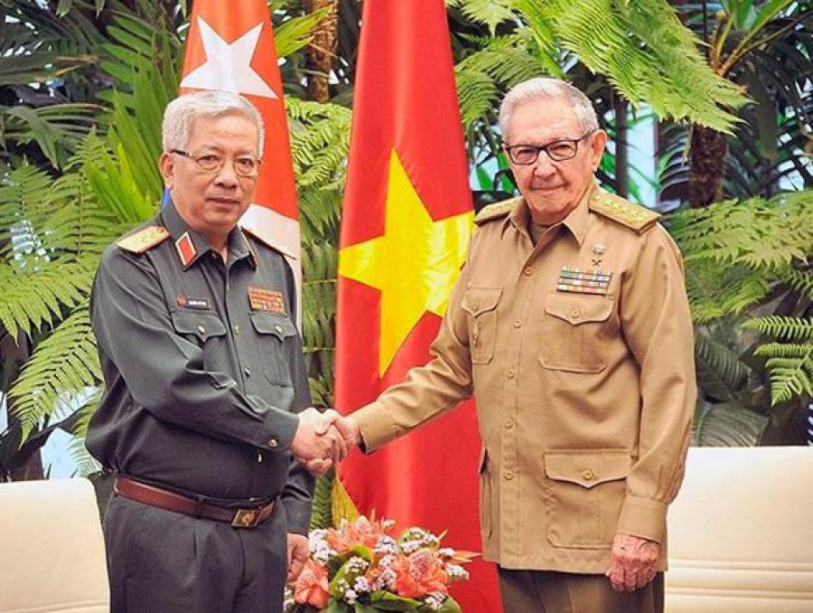 El General de Ejército Raúl Castro Ruz, Primer Secretario del Comité Central del Partido Comunista de Cuba, recibió en la tarde de este miércoles al coronel general Nguyen Chi Vinh, miembro del Comité Central del Partido Comunista de Vietnam y Viceministro de Defensa Nacional, y demás integrantes de la delegación que lo acompaña, quienes realizan una visita oficial a nuestro país invitados por el Ministerio de las Fuerzas Armadas Revolucionarias.