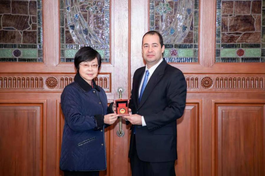 Shanghai, 14 de enero de 2021.- El cónsul general de Cuba en Shanghai, Néstor Torres, hizo entrega de la Distinción y Medalla conmemorativa “60 Aniversario” a la Asociación de Amistad del Pueblo Chino con el Extranjero de Shanghai, representada por su vicepresidenta Jing Ying. Este gesto fue un justo reconocimiento por la cooperación histórica mantenida durante todos estos años con esa institución.