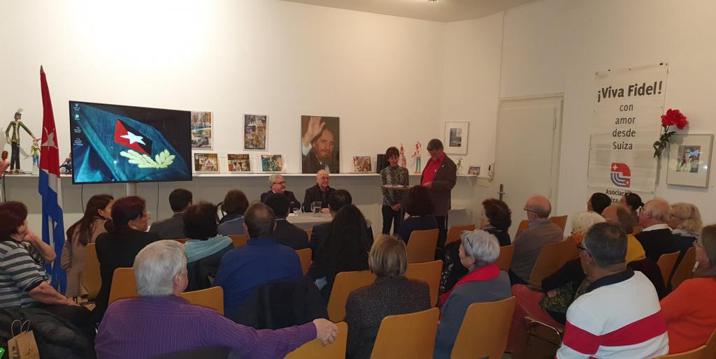 En sus palabras inaugurales, Samuel Wanitsch, miembro de la Coordinación Nacional de la Asociación Suiza-Cuba, subrayó la vigencia de las ideas de Fidel en momentos en que en varias regiones del planeta cobran auge el imperialismo, los extremismos y tendencias fascistas. También destacó el ejemplo de la Revolución cubana para los que luchan por un mundo más justo.