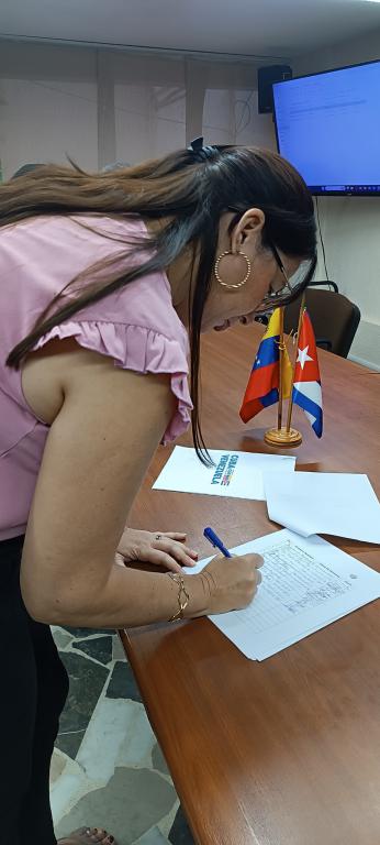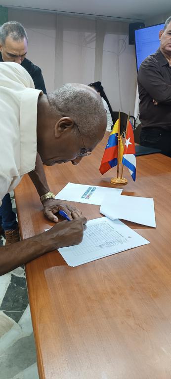 Los miembros de la misión firmaron el documento como muestra de apoyo firme y solidario al pueblo de Bolívar y Chávez, tal como han venido desarrollando nuestros colaboradores en cada rincón de Venezuela.