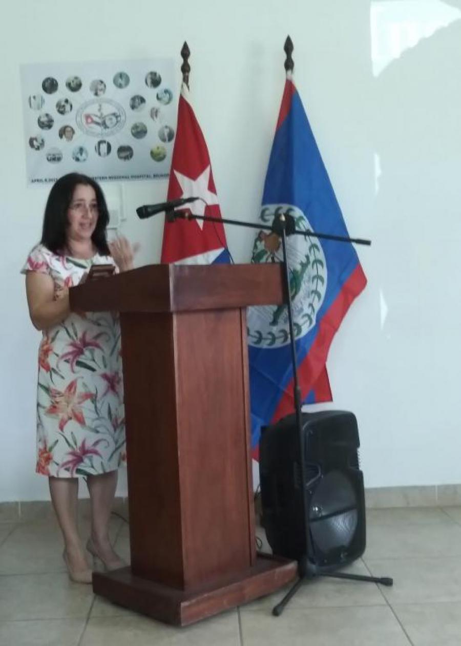 La actividad estuvo presidida por Sharon Palacio, alcaldesa de Belmopán, la embajadora cubana María Caridad Balaguer Labrada, la Dra. Natalia Largaespada, asesora del programa materno infantil del Ministerio de Salud y autoridades de salud pública beliceñas.