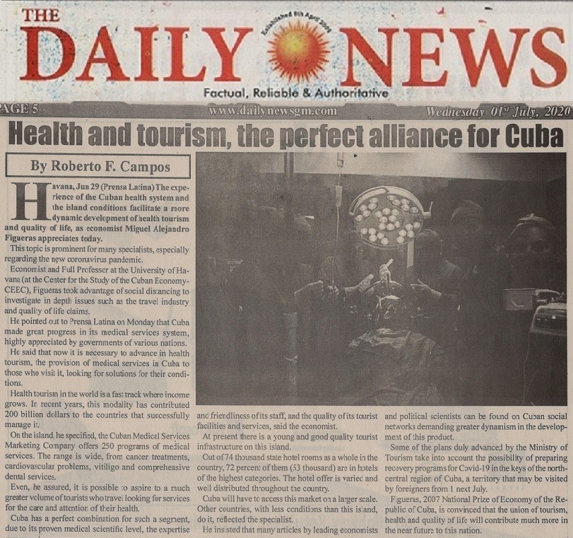Banjul, 1 julio. – Bajo el titulo Salud y Turismo, la alianza perfecta para Cuba, el diario gambiano Daily News publica hoy un interesante articulo en el cual se realza el desarrollo alcanzado por la mayor de las Antillas en ambas esferas.