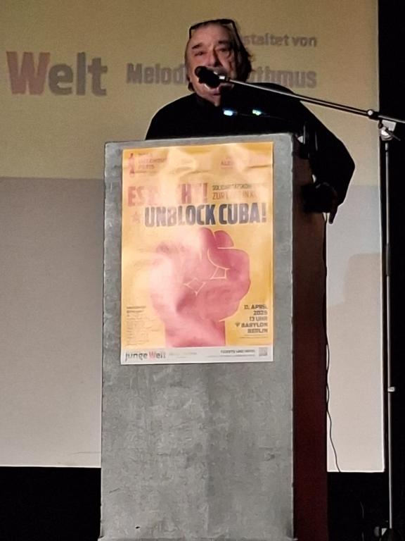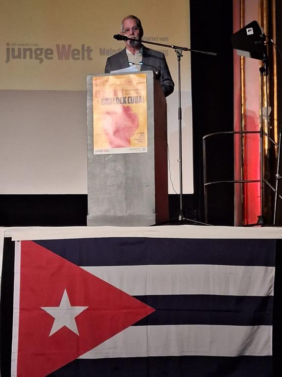 En un panel moderado por el editor jefe de junge Welt, Nick Brauns, el médico suizo y vicepresidente de la organización Medicuba-Europa, Franco Cavalli, el intelectual cubano Enrique Ubieta, Liz Oliva Fernández y la activista por los derechos humanos Fanny-Michaela Reisin intercambiaron con el público asistente. Destacaron el impacto de la cruel política de guerra y asfixia económica de Estados Unidos contra Cuba en todos los aspectos de la vida diaria del pueblo cubano, recrudecida hasta niveles sin precedentes a través del bloqueo petrolero; sobre la necesidad ahora más que nunca de ejercer la solidaridad con Cuba y de que se recuperen los valores del derecho internacional y de un mundo basado en reglas y poner fin a la imposición de la ley del más fuerte.