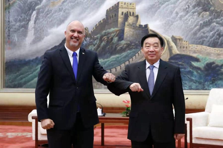 Beijing, 11 de junio de 2021- El embajador de Cuba en China, Carlos Miguel Pereira Hernández, fue recibido por Wang Chen, miembro del Buró Político del Comité Central del Partido Comunista de China (CCPCCh) y vicepresidente del Comité Permanente de la Asamblea Popular Nacional.
