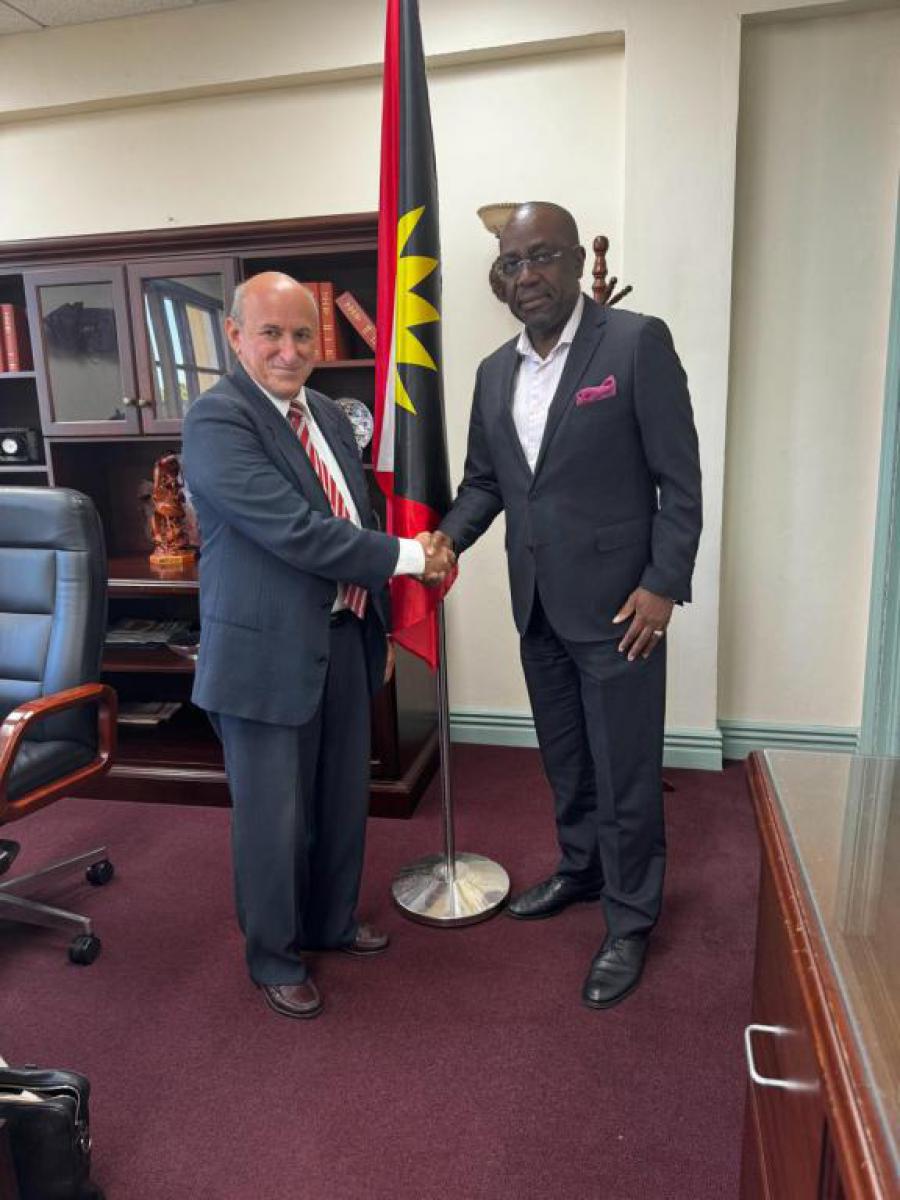 El Ministro de Relaciones Exteriores, Comercio, Agricultura y Asuntos de Barbuda, Hon. Chet Green recibió al Embajador Cubano Sergio Martínez Gonzáles. Durante el encuentro ambos destacaron las excelentes relaciones bilaterales mantenidas durante 30 años entre los gobiernos y pueblos de Antigua y Barbuda, el Canciller Antiguense traslado el agradecimiento de su gobierno al respaldo de Cuba a la candidatura de Antigua y Barbuda como miembro del ECOSOC (Consejo Económico y Social de las Naciones Unidas). De igual forma intercambiaron sobre las posibilidades de profundizar las actuales relaciones de colaboracion entre ambos paises y formas para incrementar los vínculos económicos comerciales mutuamente ventajosos para nuestros paises.