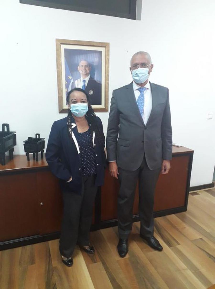 Praia, 5 de febrero de 2021 El Ministro Adjunto del Primer Ministro para la Integración Regional, Ministro de Negocios Extranjeros y Comunidades y Ministro de Defensa de la República de Cabo Verde, Excmo. Sr. Rui Alberto de Figueiredo Soares, recibió en la sede de la Cancillería a la Embajadora de la República de Cuba, Rosa Wilson.